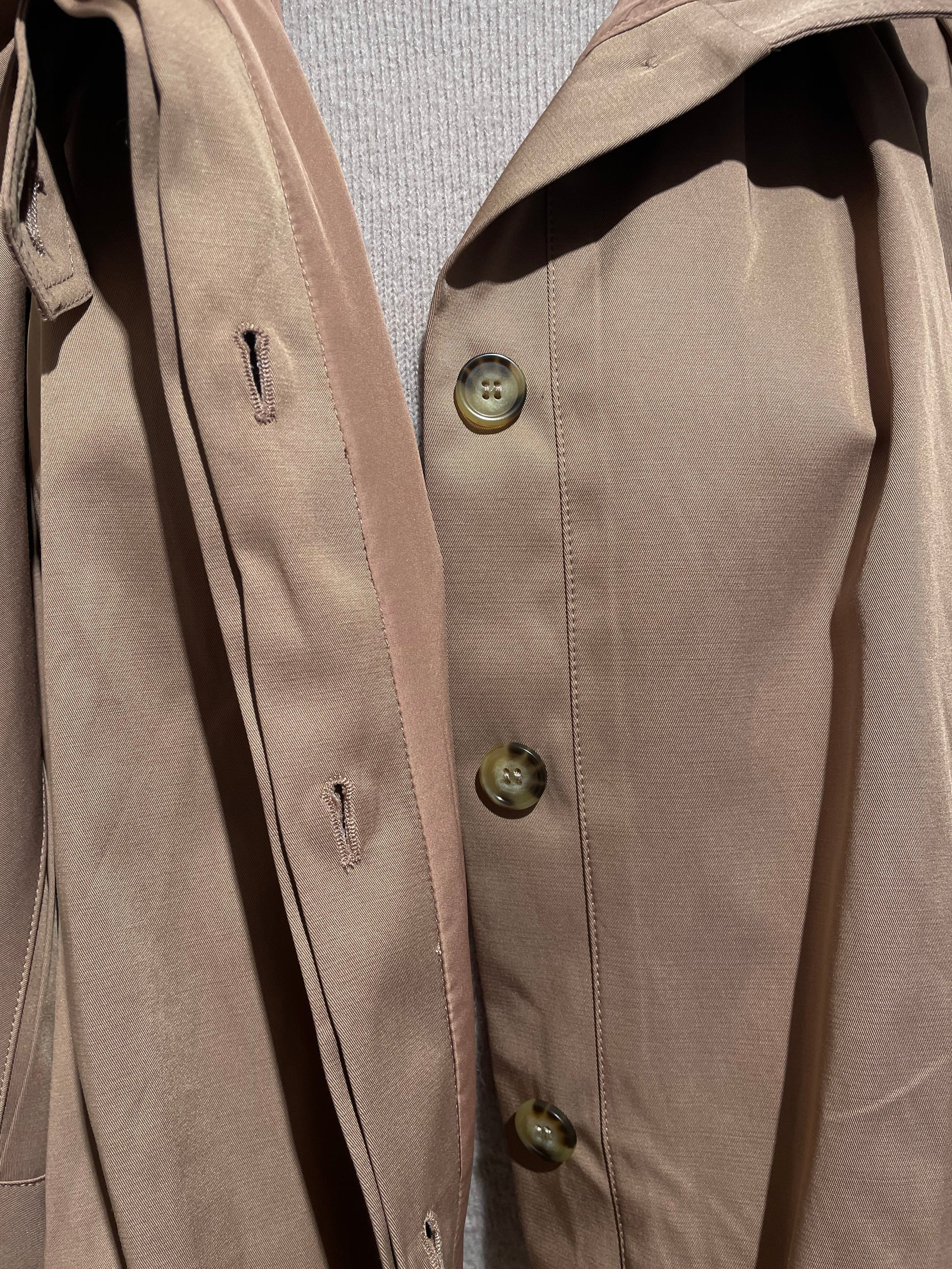 Der lockere Schnitt sorgt für ein angenehmes Tragegefühl und macht diese elegante Übergangsjacke zum idealen Begleiter für Frühling, Herbst oder kühle Sommerabende. Dezente Knöpfe und der klassische Kragen unterstreichen den luxuriösen Charakter und machen die Jacke vielseitig kombinierbar – sowohl casual als auch elegant.